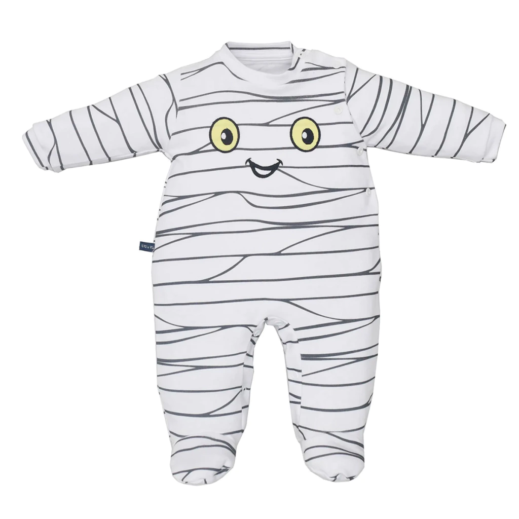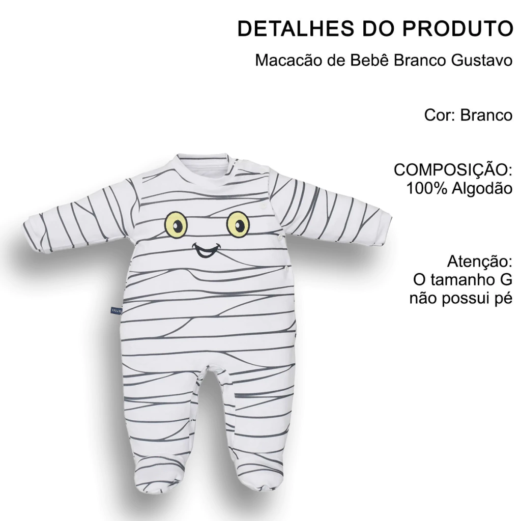 Todo em suedine, com toque macio para o bebê, é ideal para o dia a dia. Todo estampadinho na digital de múmia e bordadinho de carinha do peitinho do modelinho, é divertido, fácil de vestir e confortável!