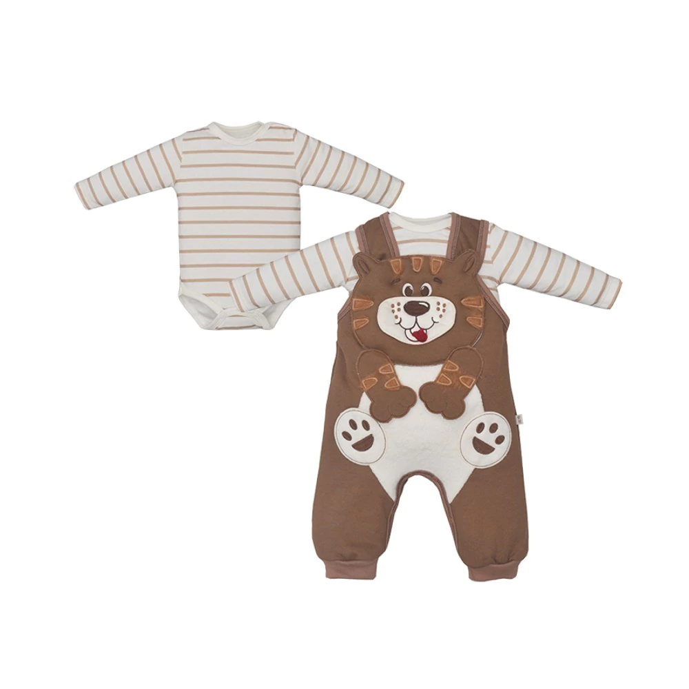 Um toque de delicadeza para todos os momentos do seu pequeno! Este conjunto de body de manga longa e macacão estilo jardineira Upi Uli traz um visual encantador e único com body na cor marrom e macacão estilo jardineira com estampa e aplique de cachorrinho em 3D. Um look cheio de conforto e charme para o dia a dia do seu bebê.