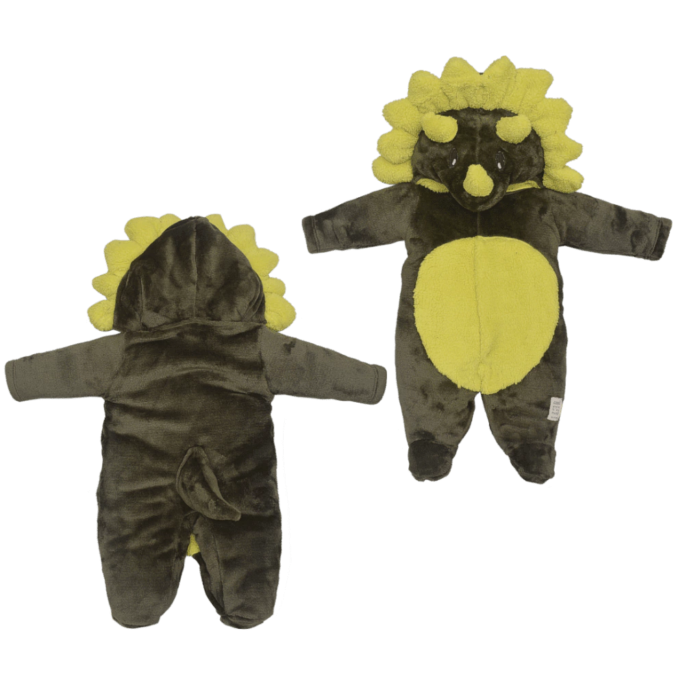 Este macacão é perfeito para deixar o pequeno ainda mais fofo e confortável, com um visual de dinossauro superadorável!