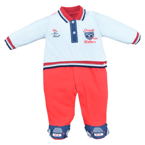 Escolha o Macacão Vermelho Prix Motors para proporcionar um visual vibrante e confortável para o seu bebê.