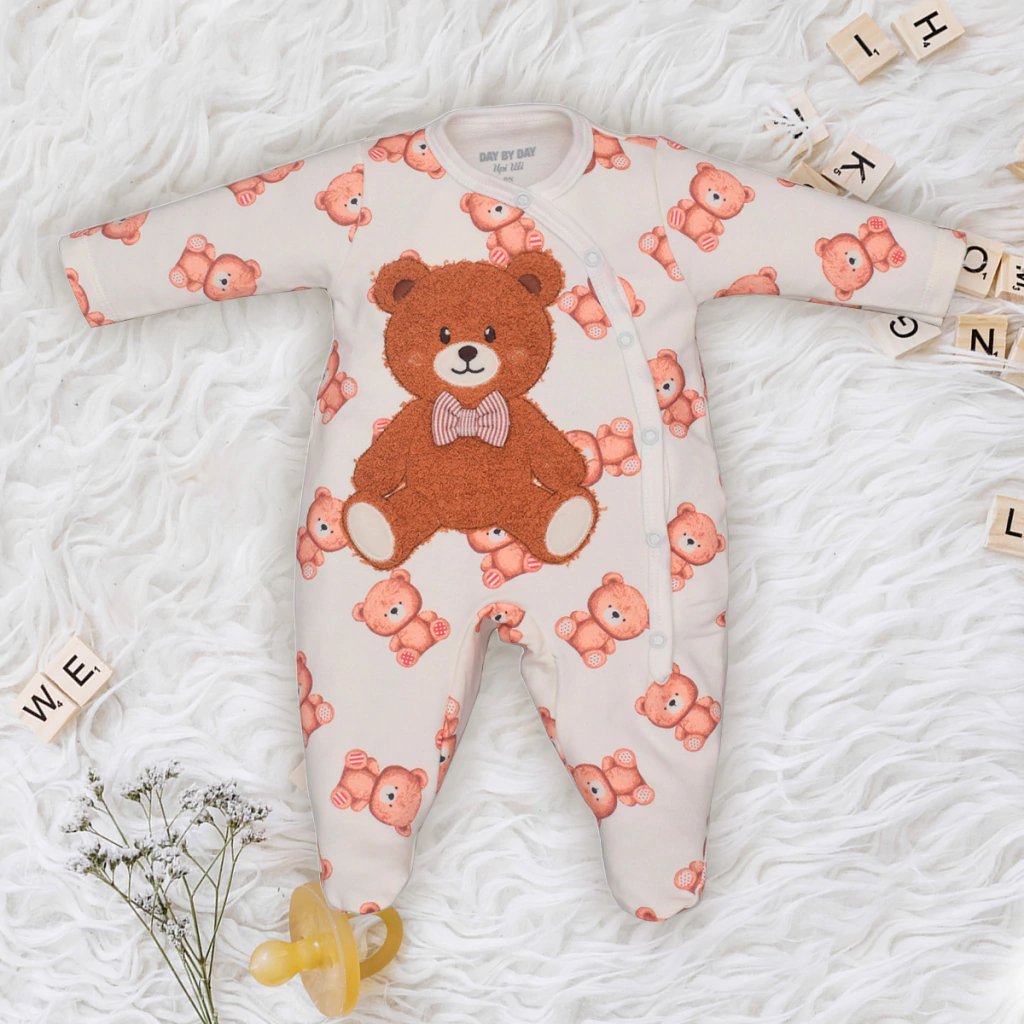Deixe seu bebê ainda mais fofo e confortável com este lindo macacão estampado de ursinhos! Feito em molecotton macio, ele proporciona aconchego e liberdade de movimento.