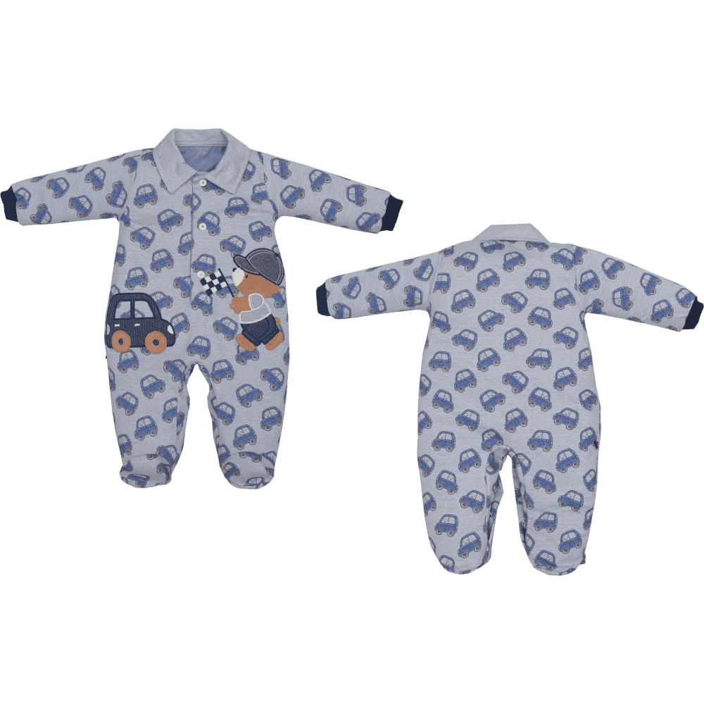 O Macacão Azul Urso Bebê Menino D'Julio é a combinação perfeita de conforto e estilo para o seu pequeno. Com uma estampa divertida de carrinhos e um delicado bordado de ursinho, ele é ideal para deixar o bebê bem-vestido em qualquer ocasião, oferecendo aconchego e praticidade no dia a dia.