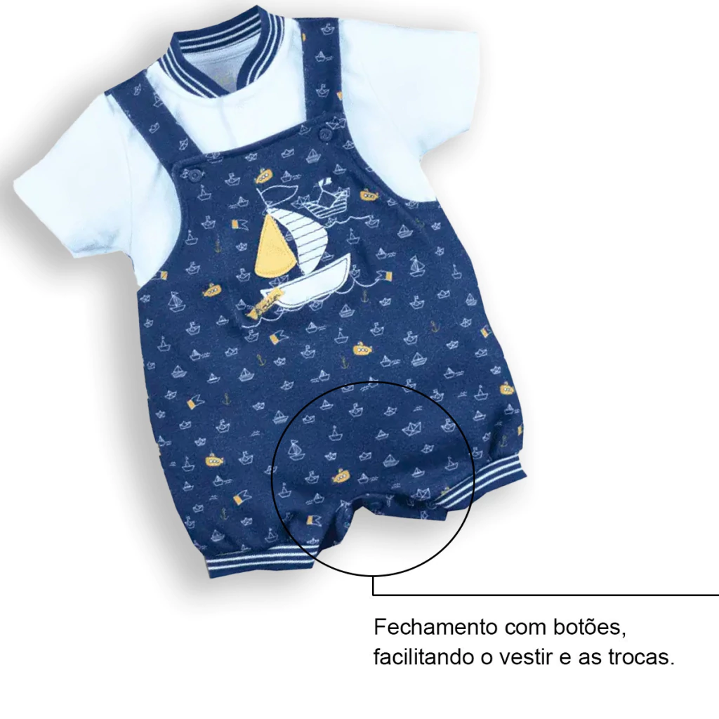 O Macaquinho Azul Estampado Barquinhos da Upi Uli é uma peça cheia de ternura, perfeita para acompanhar os passeios do seu pequeno com conforto e estilo. Com estampa náutica e um barquinho bordado no centro, ele é ideal para dias leves e momentos especiais.