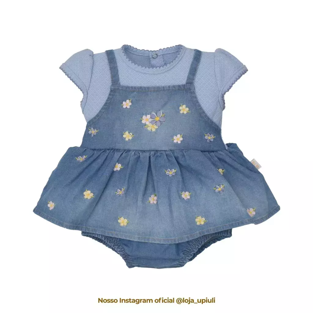 Macaquinho De Bebê Tricot/Jeans Luiza
