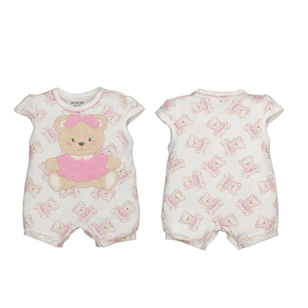 O Macaquinho Bebê Menina Suedine Ursinha Day by Day Upi Uli é a escolha perfeita para manter sua bebê fresquinha, confortável e cheia de charme nos dias mais quentes. Produzido em suedine macio e respirável, proporciona toque suave na pele e liberdade de movimentos. Possui fechamento prático com botões de pressão, facilitando na hora de vestir e trocar. O destaque fica para a estampa fofa de ursinha com laço rosa e padronagem delicada por toda a peça.