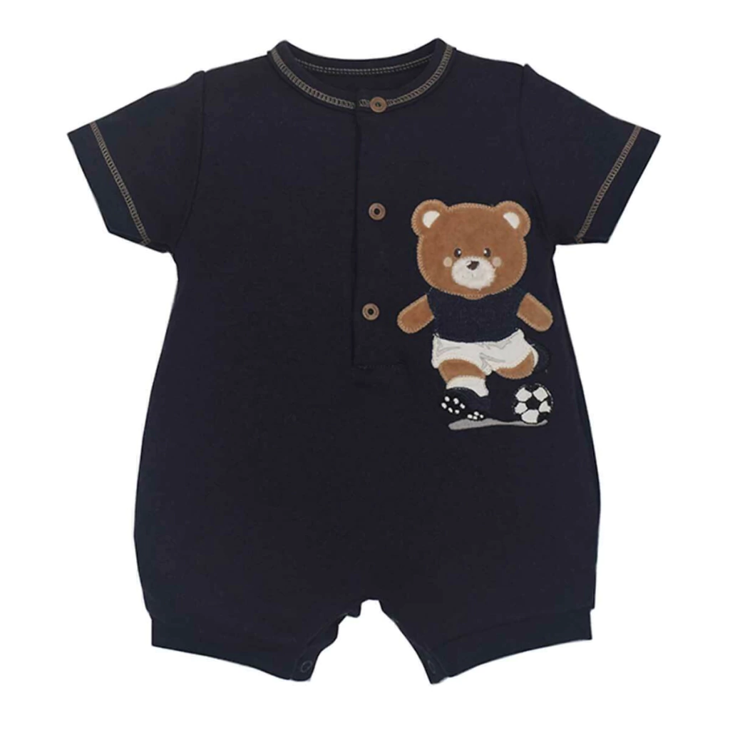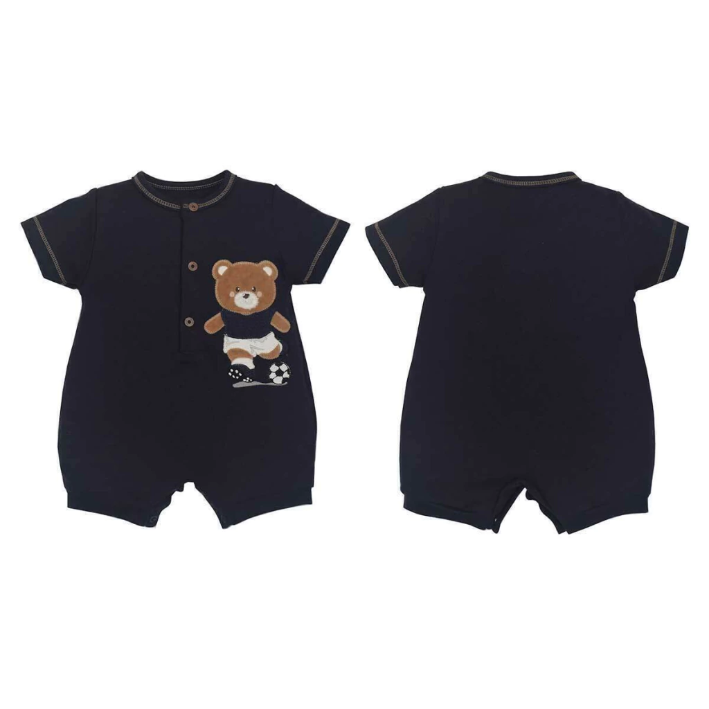 O Macaquinho Suedine Urso Jogador é a peça ideal para vestir o bebê com conforto e estilo nos dias quentes. Feito em suedine leve, o modelinho possui fundo azul marinho e aplique bordado de ursinho com bola, trazendo um ar esportivo e fofo ao visual. Com botões de pressão frontais, facilita o vestir e a troca, sendo prático para o dia a dia.