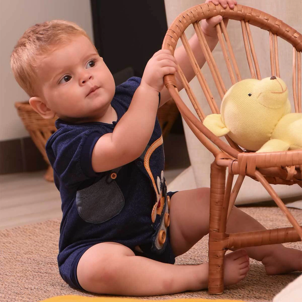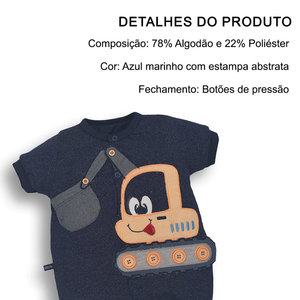 Este macaquinho une o conforto do algodão com o design moderno, sendo ideal para manter seu bebê confortável e estiloso. Perfeito para passeios informais ou momentos descontraídos!