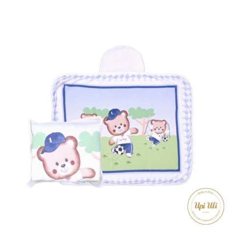 Esta toalha de banho com capuz é ideal para envolver seu bebê em suavidade e aconchego após o banho. Confeccionada em tecido macio e absorvente, a toalha possui uma estampa encantadora com dois ursinhos brincando de bola ao ar livre, sob um céu azul, trazendo um toque lúdico e alegre para a rotina do seu pequeno.