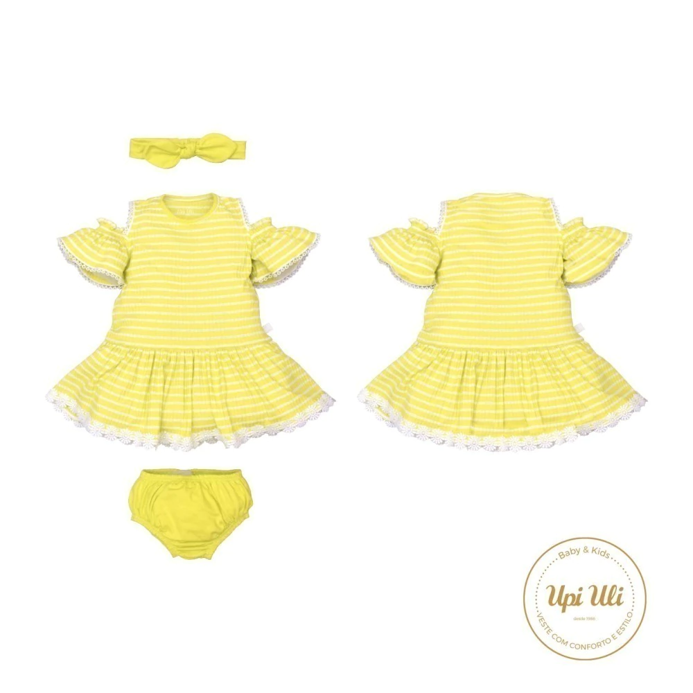 Este lindo vestido na cor verde limão é a escolha perfeita para garantir conforto e estilo à sua bebê. Confeccionado em malha com elastano, ele é macio e proporciona liberdade de movimentos. O modelo conta com delicados detalhes de lastex nas mangas e rendas nas alças e mangas, trazendo um charme especial à peça. Para completar o look, acompanha uma tiara 100% algodão, combinando perfeitamente com o vestido.
